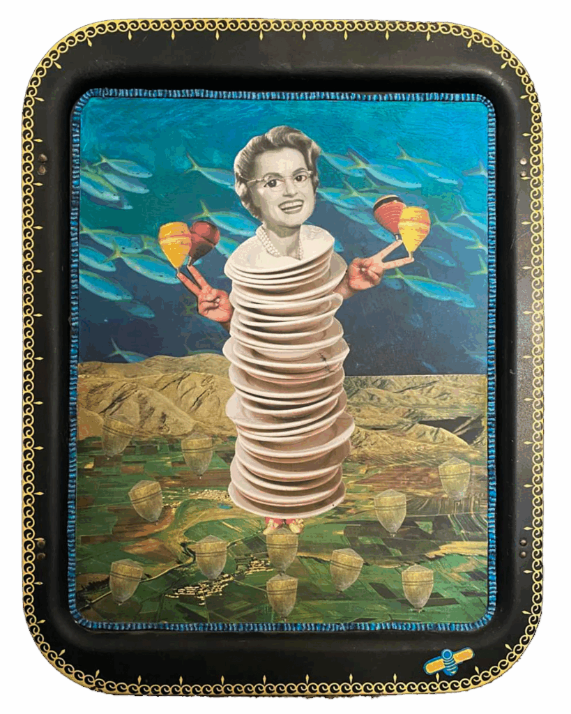 The Grocery Studios presents Dee Dee Does Downsizing, an installation of over 125 artworks by Deborah Faye Lawrence, an artist who has been registering her grievances against tyranny since 1980. She disrupts us with collaged images that create unexpected juxtapositions paired with an intense choice of words, images, and references. The May 16th pop-up exhibition and art sale features 45 years of powerful collages which address political events, social activism, feminism, and personal history.